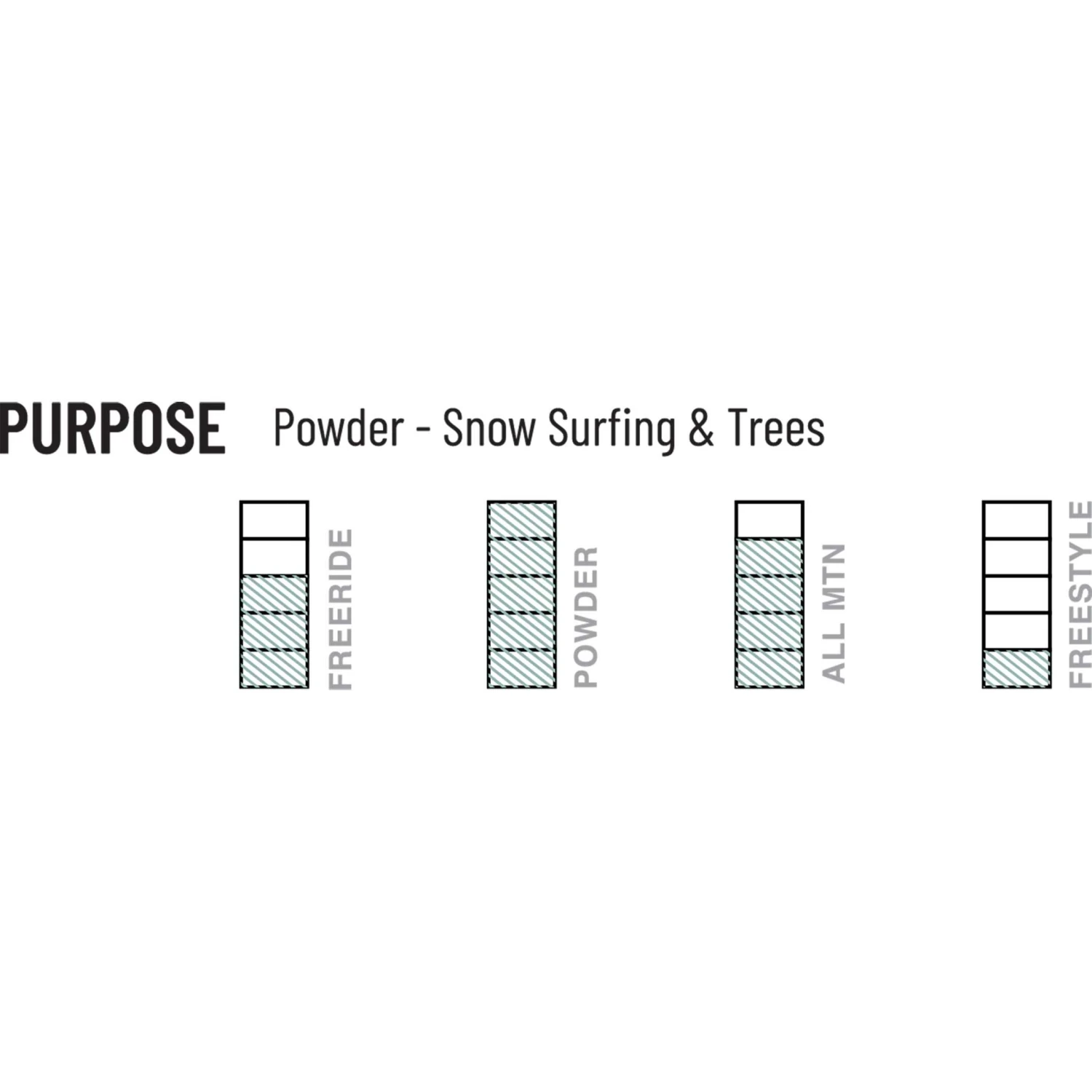 Weston Revel er et pulverbræt til kvinder. Lige så udtalt form som Japow, men lidt mere raffineret. Med sit medium flex og rocker i næsen er dette board let at dreje og styre. En fornøjelse på dybe dage. Karbonstrenge i halen og camber mellem fødderne giver kantgip. Carving er derfor ikke udelukket på dette pudderbræt. Til damer, der ved, hvad de vil have.
