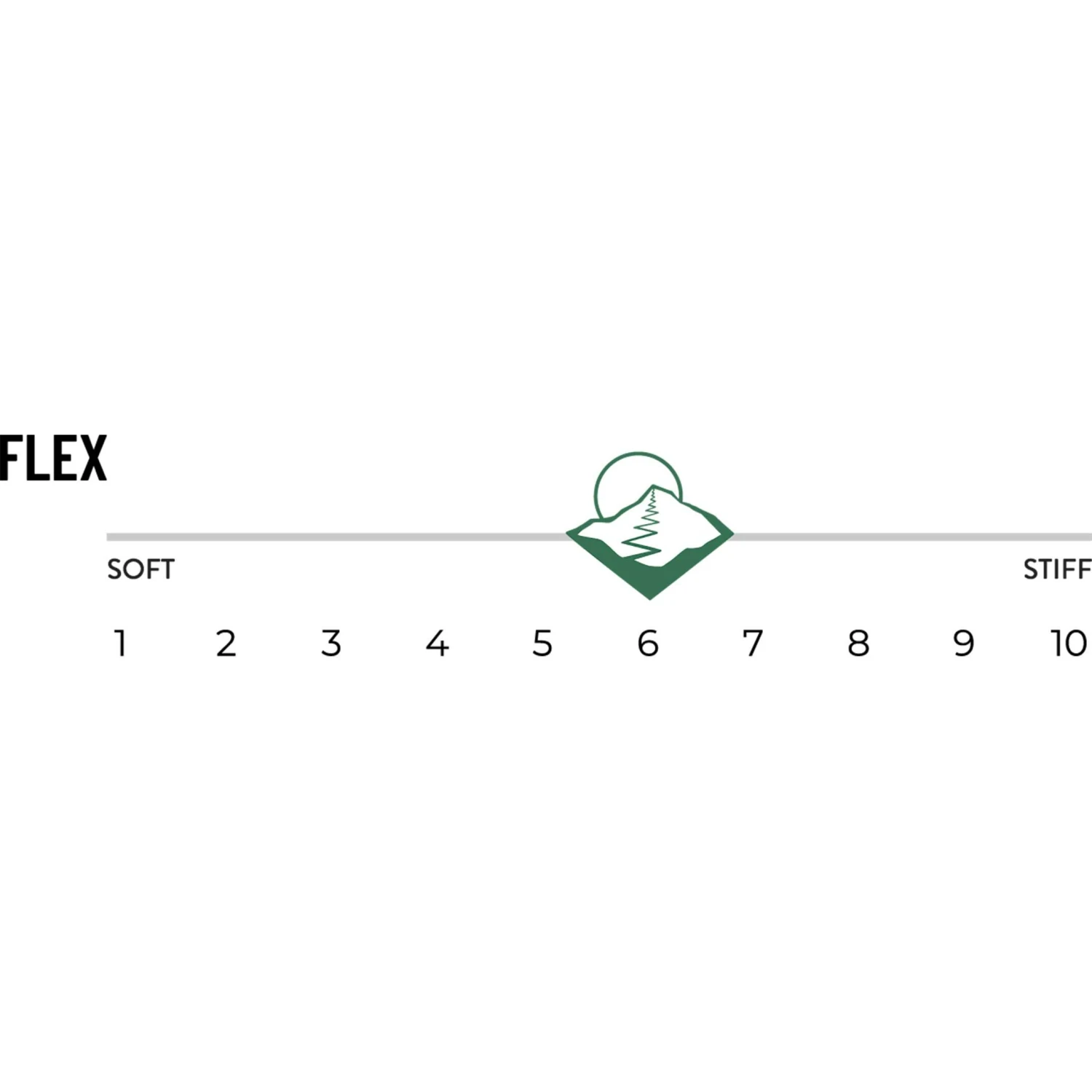 Meerassig, gestikt glasvezellaminaat. Dit laminaat biedt een nauwkeurige en responsieve rit op elk terrein of elke sneeuwconditie.