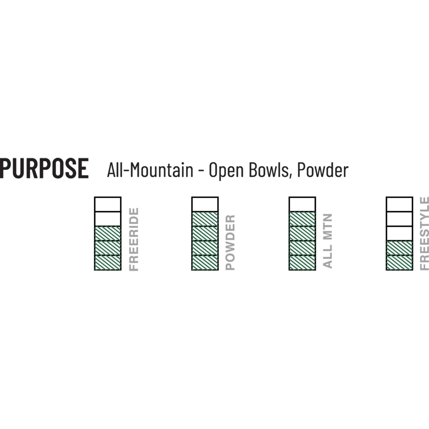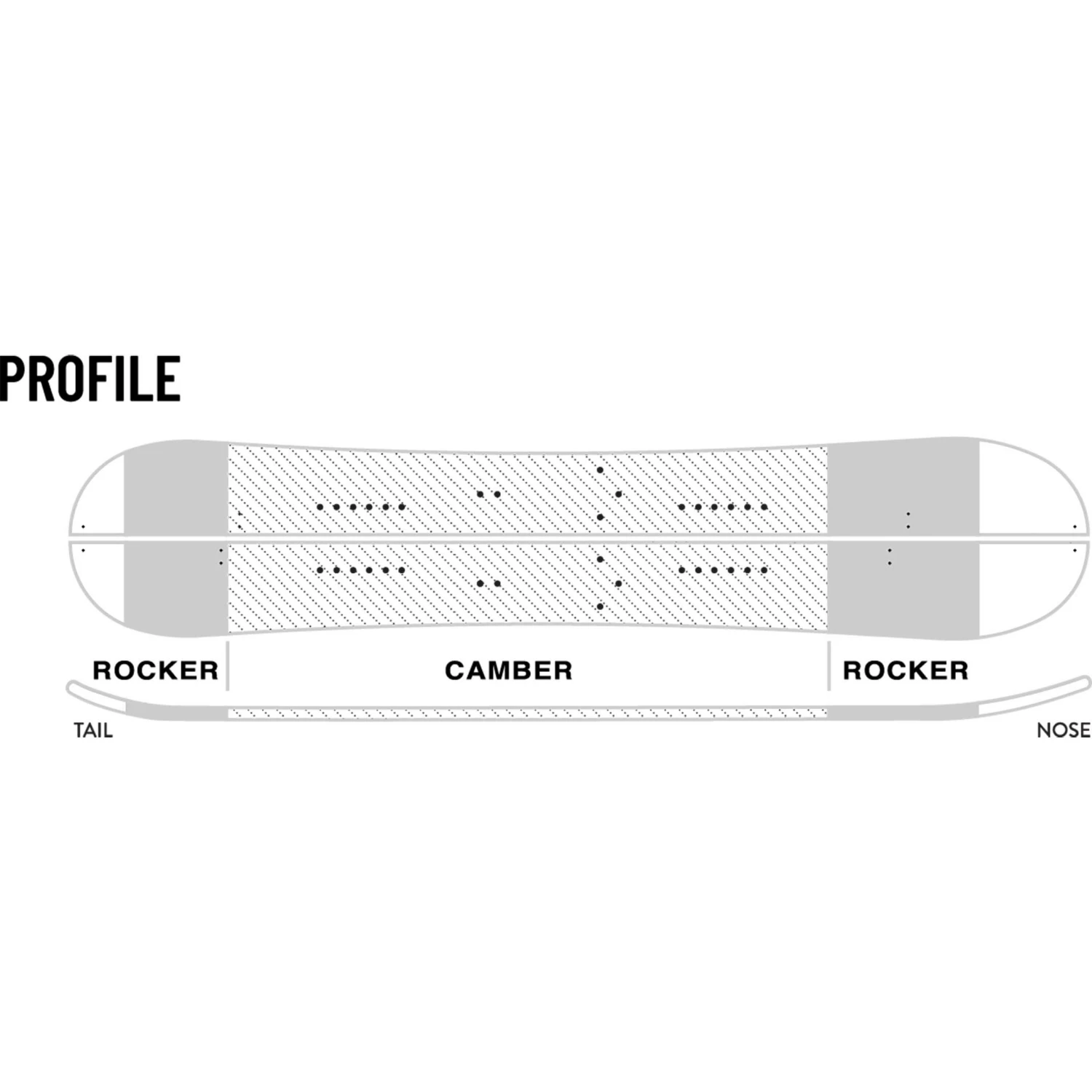 Een geleidelijke toename van rocker in de neus naar een agressievere camber in de tail. Dette giver bedre pop, bedre fald og bedre kontrol på større linjer.